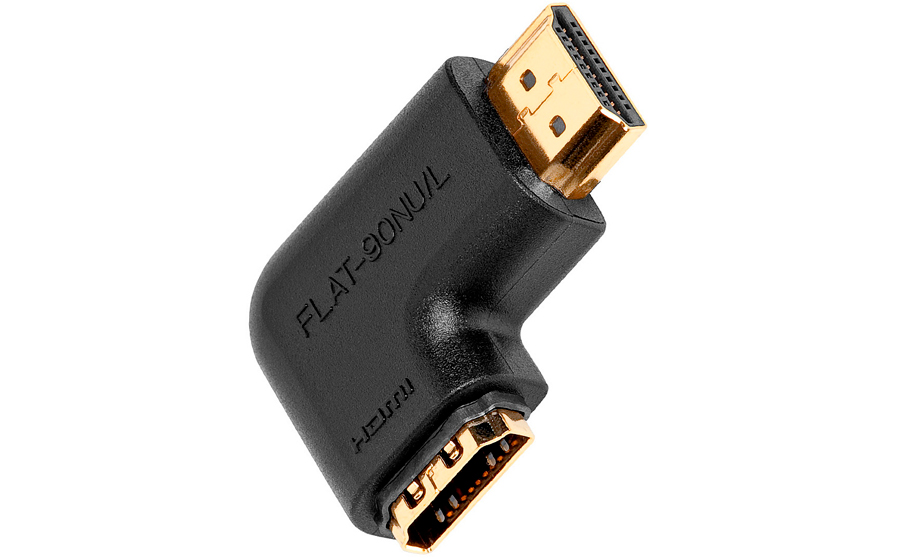 Los adaptadores de ángulo recto HDMI de AudioQuest se ajustan perfectamente a los últimos televisores planos. Un enchufe orientado hacia el lado puede ser dirigido hacia atrás o hacia abajo y una espalda orientada hacia un lado o hacia abajo. Los soportes de bajo perfil pueden cerrarse correctamente.